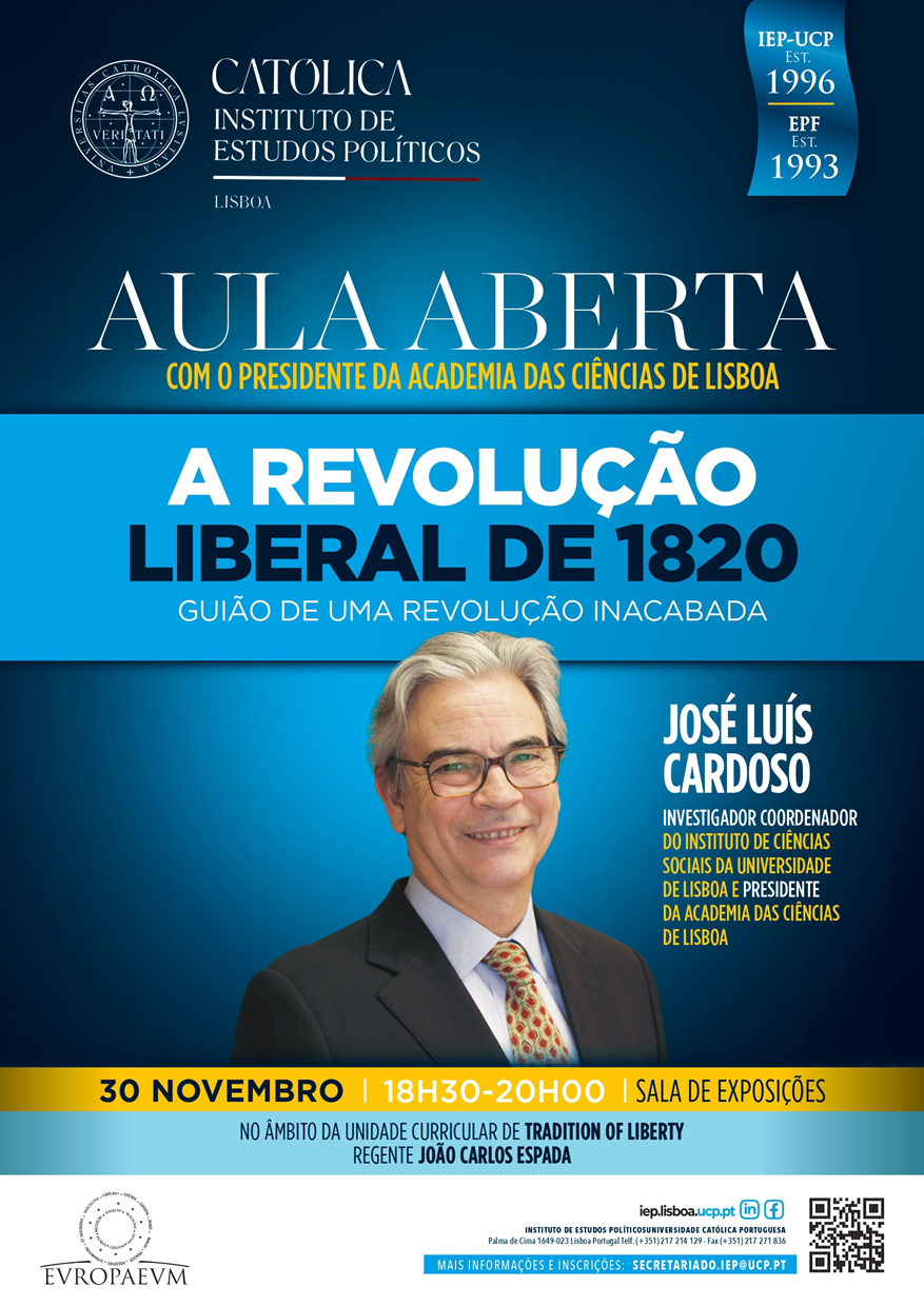 Open Class within the curricular unit of Tradition of Liberty (Prof. João Carlos Espada) with Prof. José Luís Cardoso, President of the Academy of Sciences of Lisbon - A Revolução Liberal de 1820: Guião de uma Revolução Inacabada