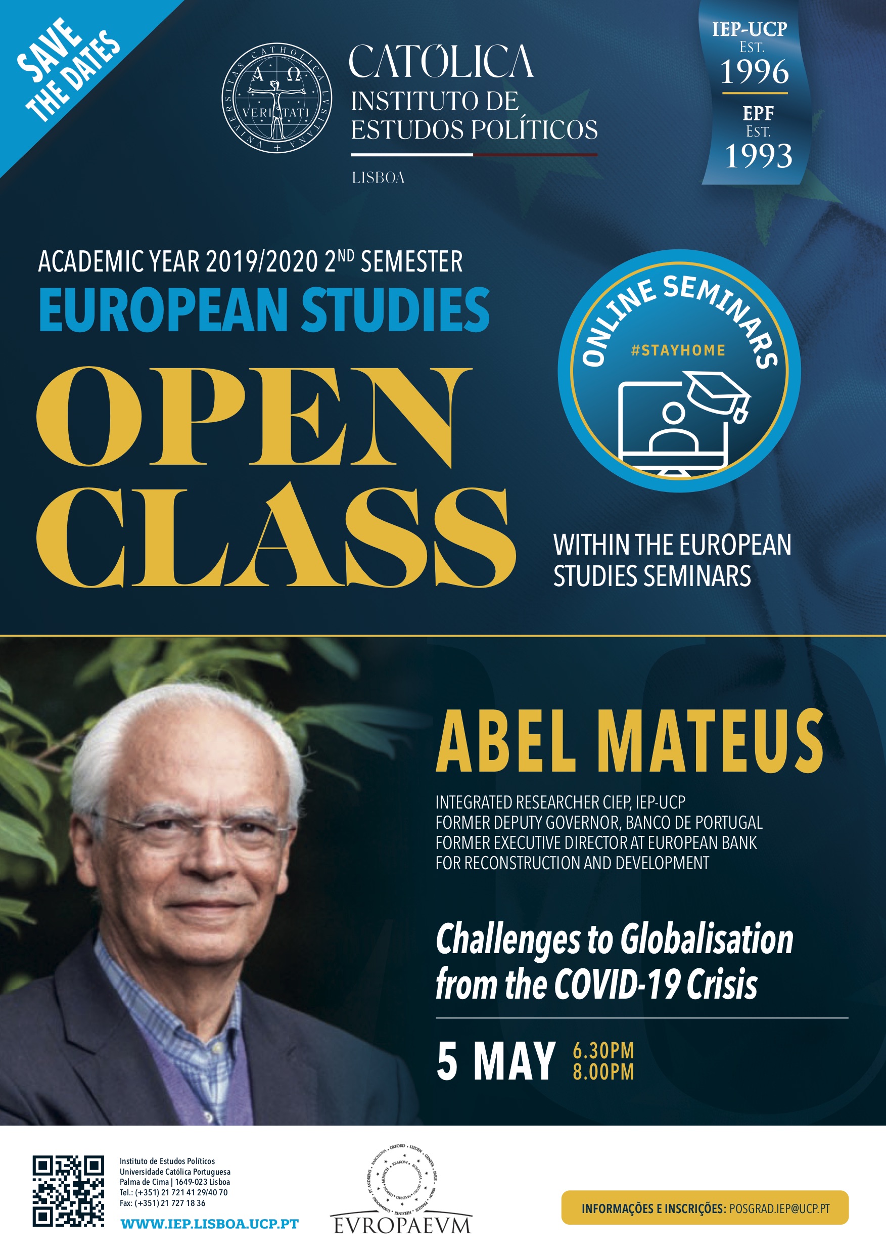 OPEN CLASS: European Studies seminar com Abel Mateus (18.30-20.00) - "Os Desafios à Globalização da Crise COVID-19"