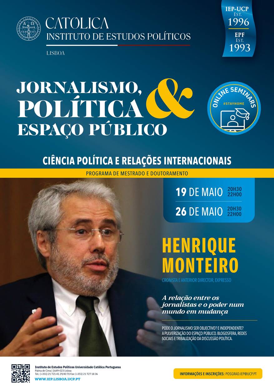 Seminário Jornalismo, Política & Espaço Público com Henrique Monteiro (20.30-22.00) - "A Relação entre os Jornalistas e o Poder num Mundo em Mudança"
