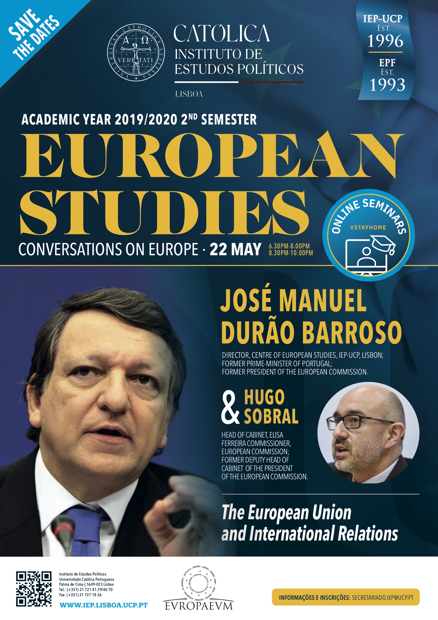 European Studies seminar com José Manuel Durão Barroso e Hugo Sobral (18.30-20-00) - "The European Union and the International Relations"
