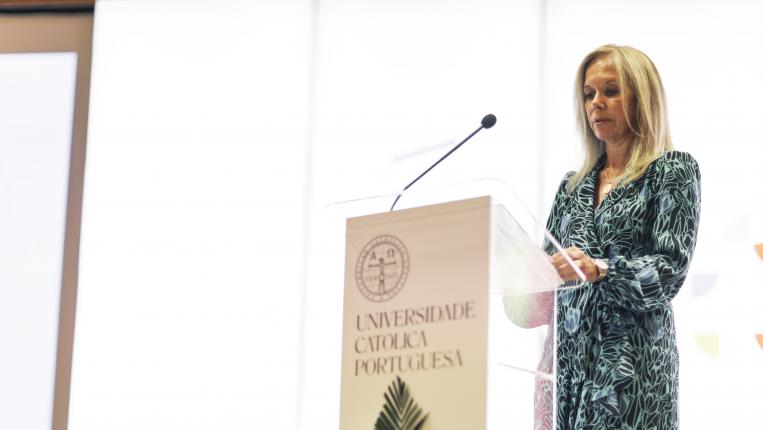 A sessão foi presidida pela Reitora da Universidade Católica Portuguesa, Prof.ª Doutora Isabel Capeloa Gil, seguida das boas-vindas pela Diretora do IEP-Católica, Prof.ª Doutora Mónica Dias.